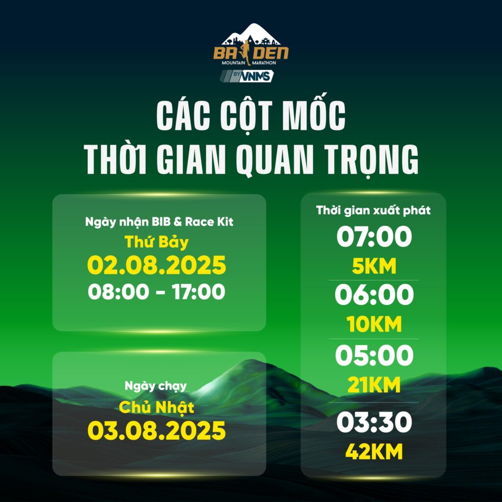 CÁC MỐC THỜI GIAN QUAN TRỌNG TẠI BADEN MOUNTAIN INTERNATIONAL MARATHON 2025