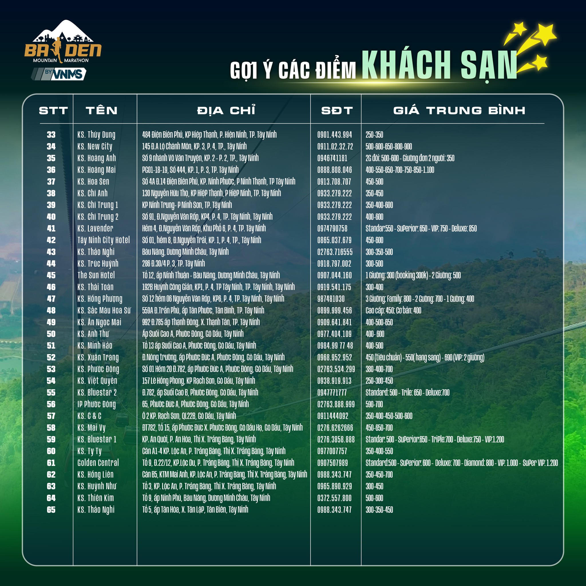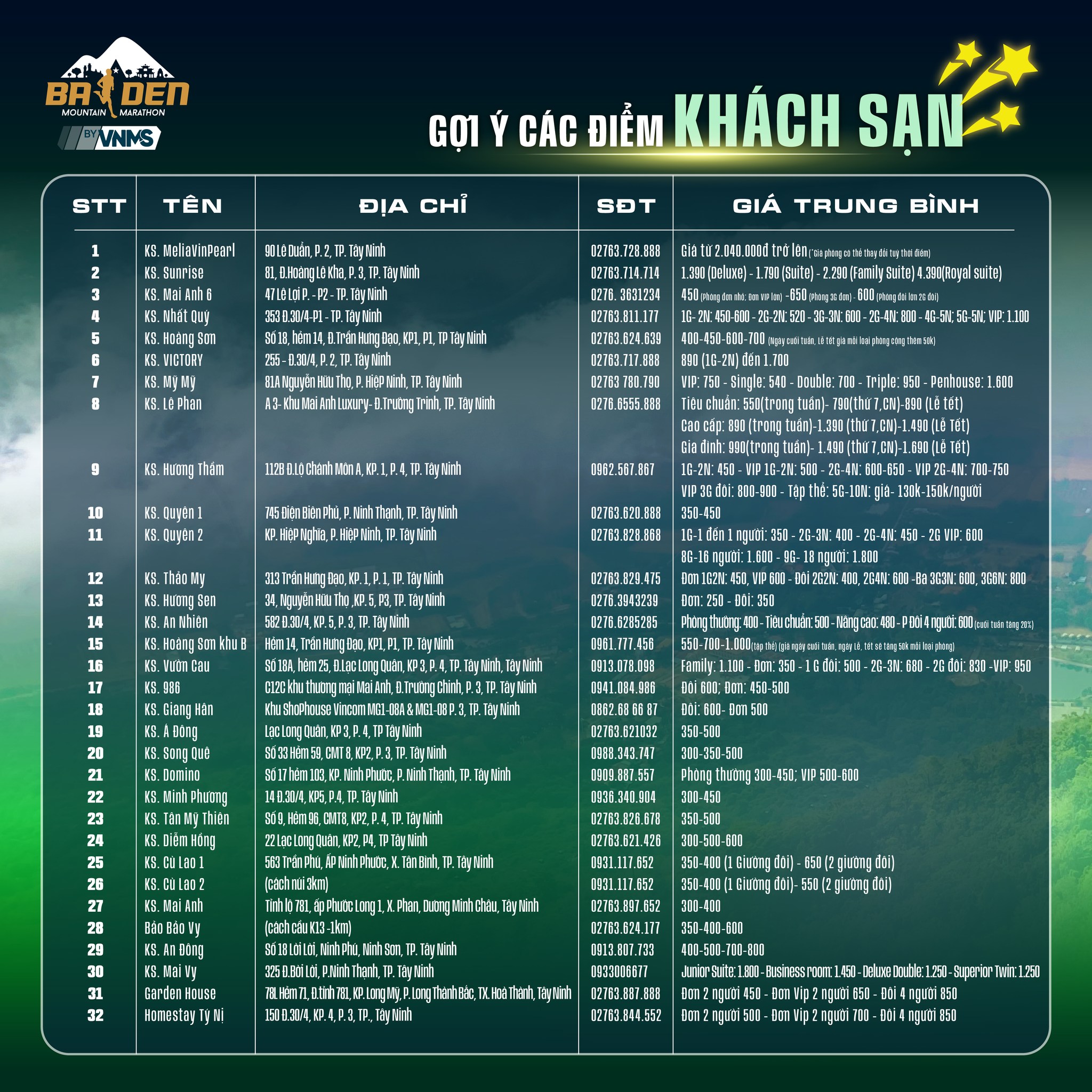 GỢI Ý ĐỊA ĐIỂM LƯU TRÚ TẠI TÂY NINH - GIẢI BADEN MOUNTAIN INTERNATIONAL MARATHON 2025