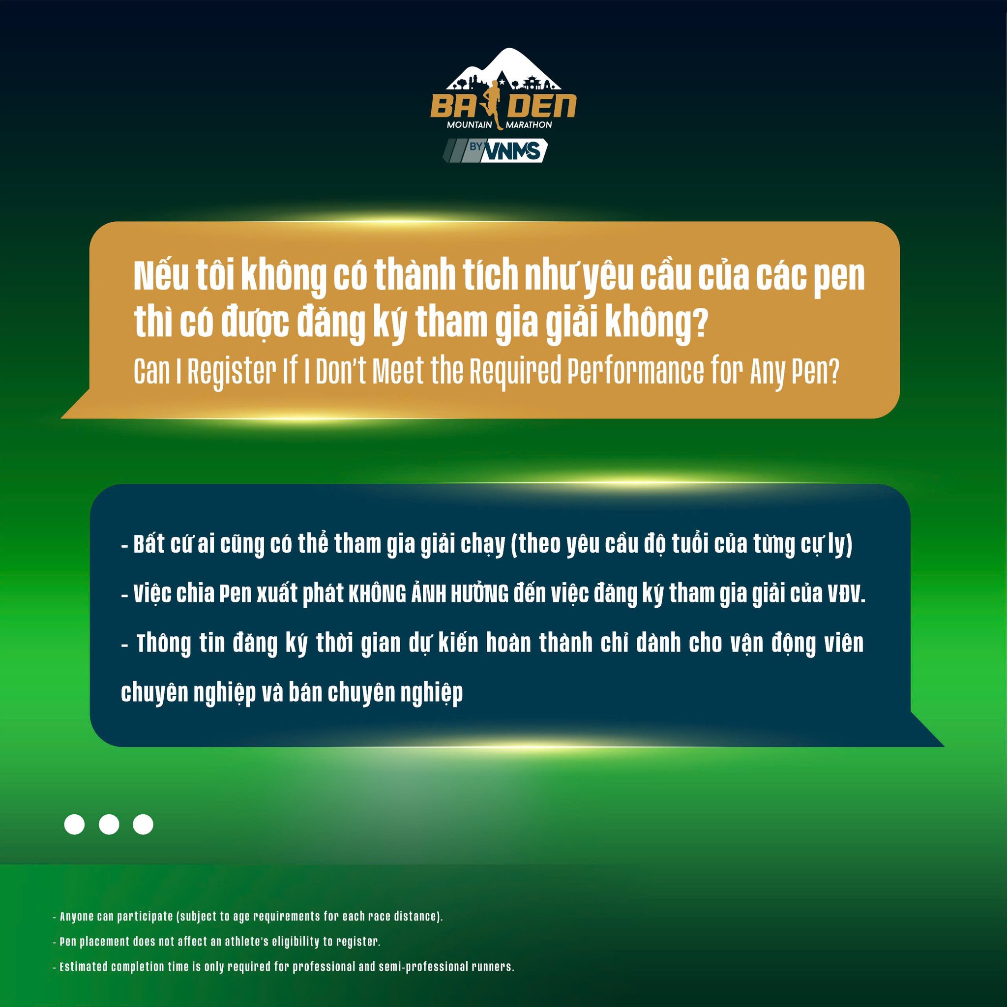 – Chỉ riêng VĐV ở Pen A và B của 2 cự ly 21km và 42km mới bắt buộc nộp thành tích chứng nhận.